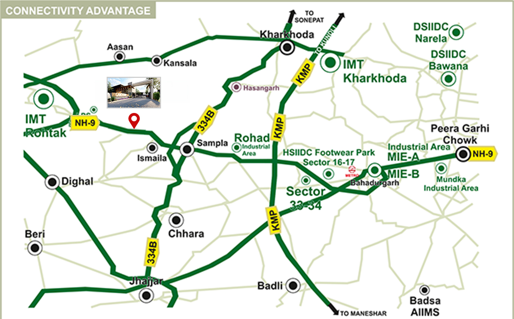 Excellent connectivity from Major Industrial Area and transit locations around Delhi/NCR with Major National Highways such as NH-9 (connect Delhi to Rohtak), KMP, 334B, Katra Corridor, Delhi-Bombay Corridor connecting Gandhra Industrial Area to Major areas of North India for Ease of Doing business.